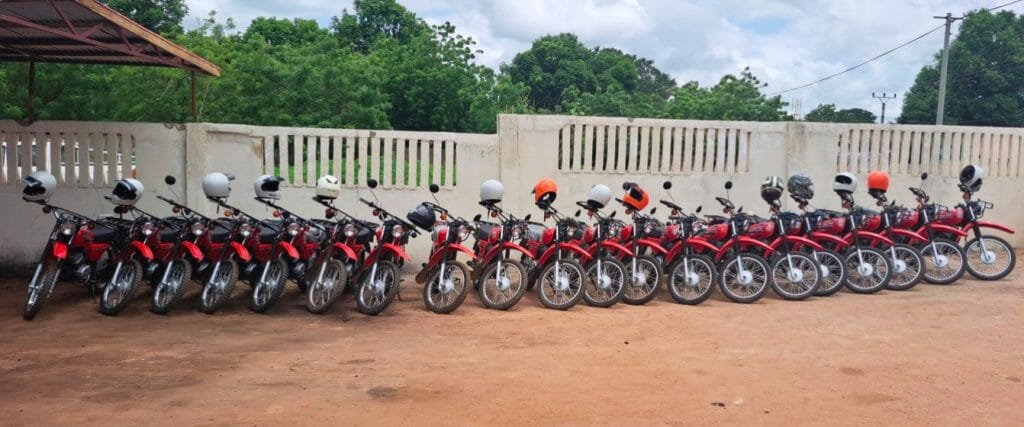 “With motorcycles, health workers can spend double the time in communities where they regularly provide post-natal services, bring education and preventative measures such as mosquito nets, provide guidance on how to prevent the transmission of disease, and refer patients for tests and much more.”